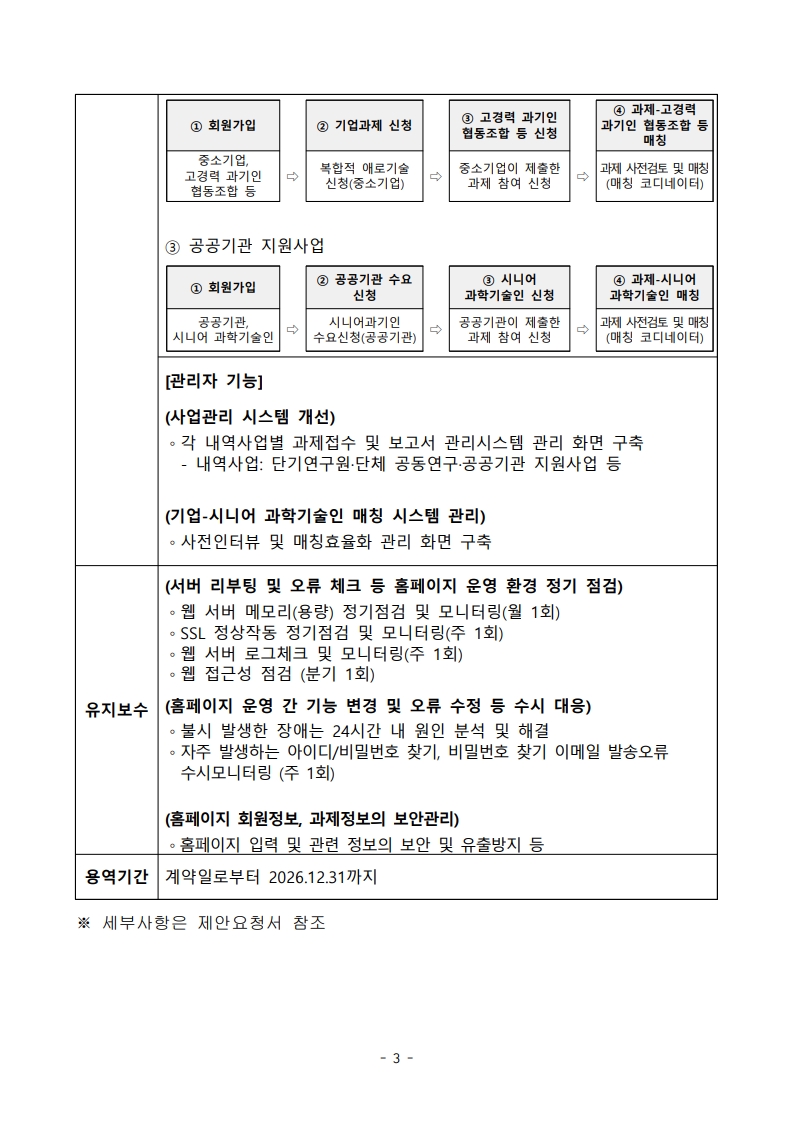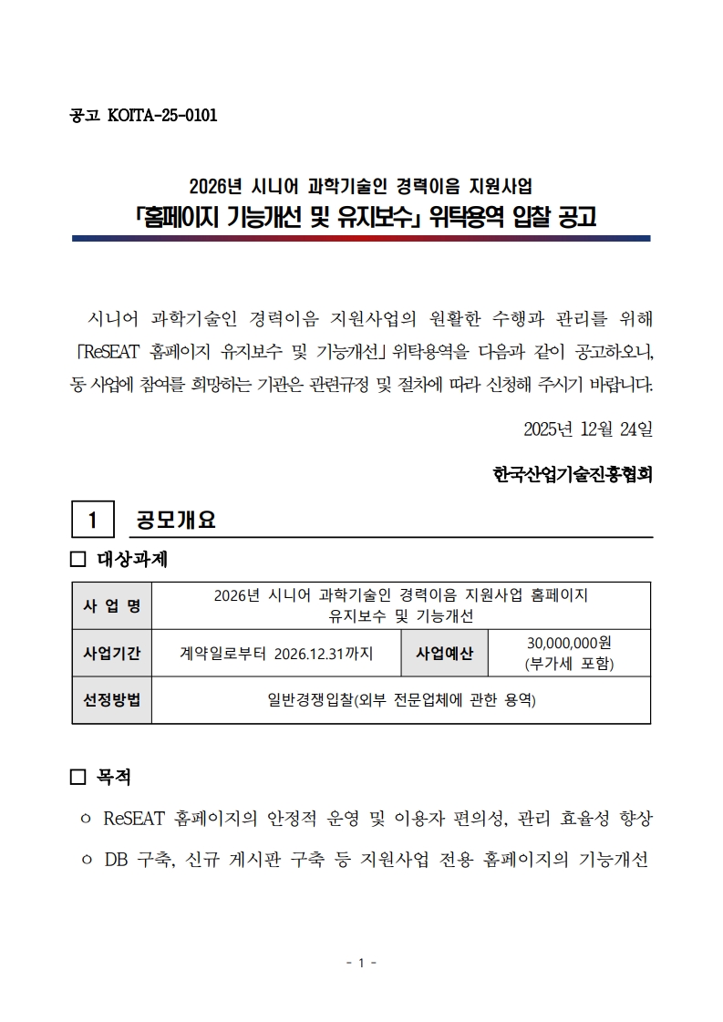 | [입찰공고] 2026년 시니어 과학기술인 경력이음 지원사업 홈페이지 기능개선 및 유지보수 입찰공고 안내문 | |||