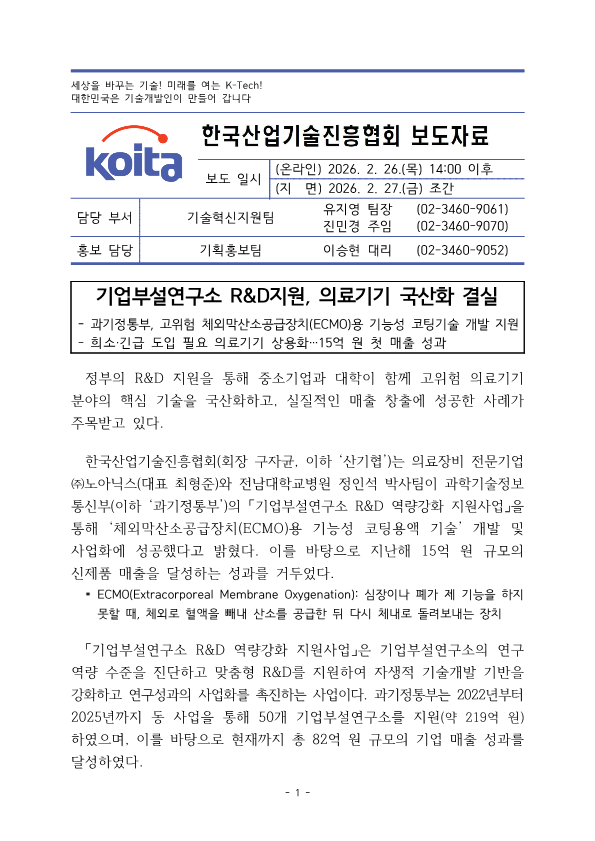 | [보도자료] 기업부설연구소 R&D지원, 의료기기 국산화 결실 | |||