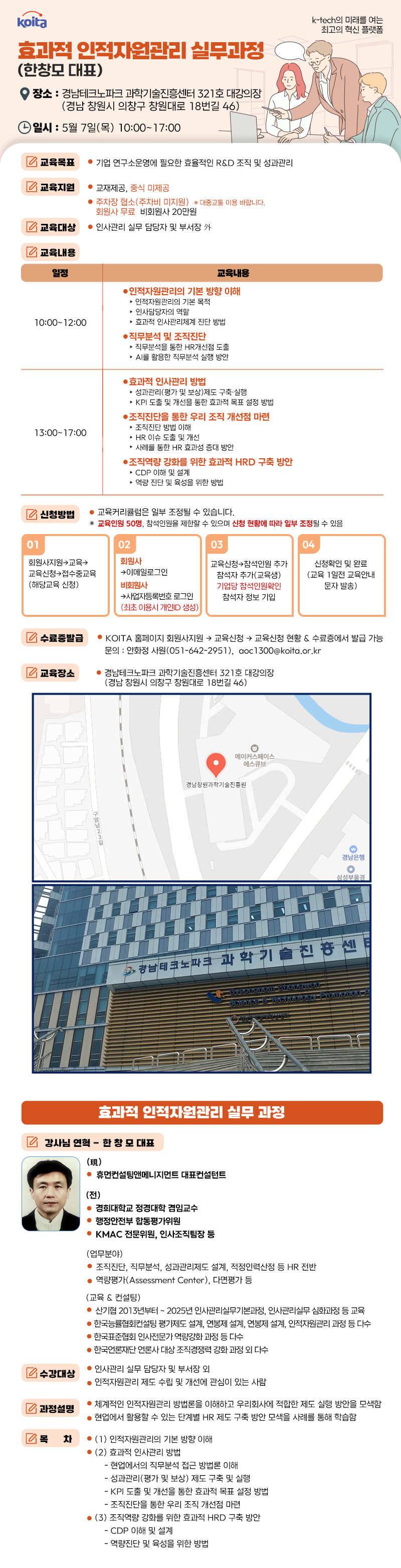 경남테크노파크 과학기술진흥센터 3층 321호 대강의장(경남 창원시 의창구 원이대로 18번길 46)